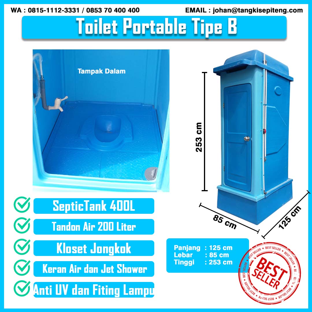 Jual Toilet Portable Tipe B (Septictank, Penampungan Air atas)